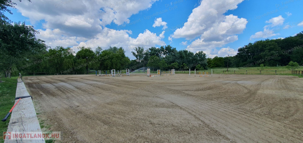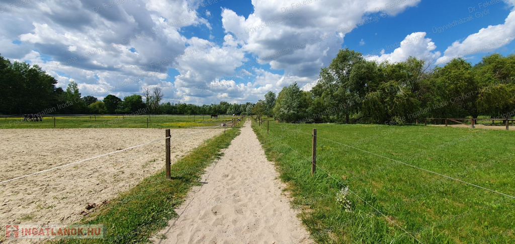 Az ingatlan cca. 10 hektár nagyságú működő gazdasági egység, több tevékenységgel, Győrtől néhány percre a Fertő-Lajta Hansági nemzeti parkban. (Lovarda, panzió, étterem)