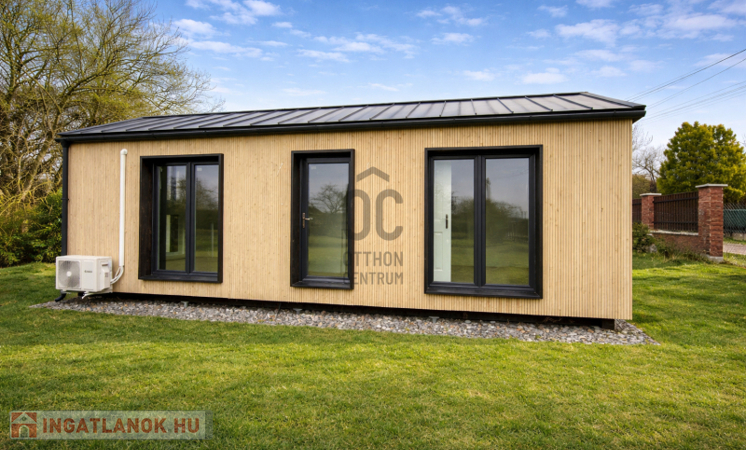 Eladó Hajdúsámson-Martinka csendes, nyugodt részén, a Vincellér utcában egy 1108 m²-es telek modern, kulcsrakész 32 m²-es mobilházzal.