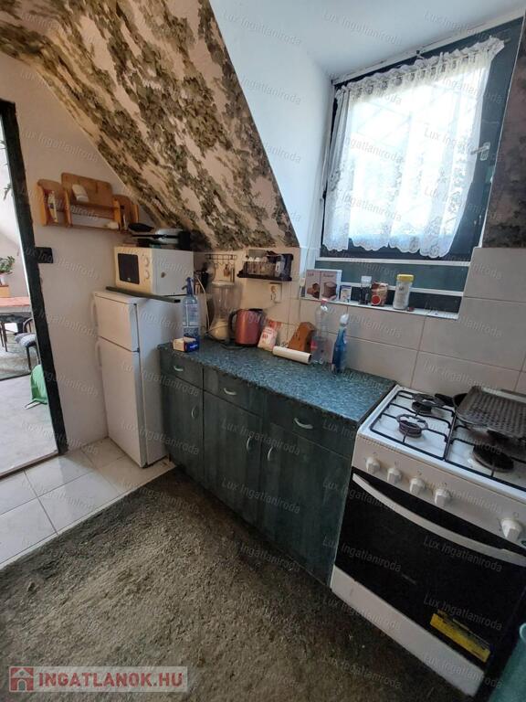 Festői környezetben, Natura 2000-es terület szívében kínálunk megvételre egy betonból, téglából és terméskőből épült, 40 m² alapterületű házat beépített tetőtérrel. A házban lent egy nyári konyhás borozó és egy aknás, nagy garázs kapott helyet, fönt pedig 2 szoba, konyha, fürdőszoba és egy nagy terasz gyönyörű panorámával. A kilátás minden évszakban lenyűgöző, a környék nyugalma pedig garantáltan feltöltő pihenést biztosít.