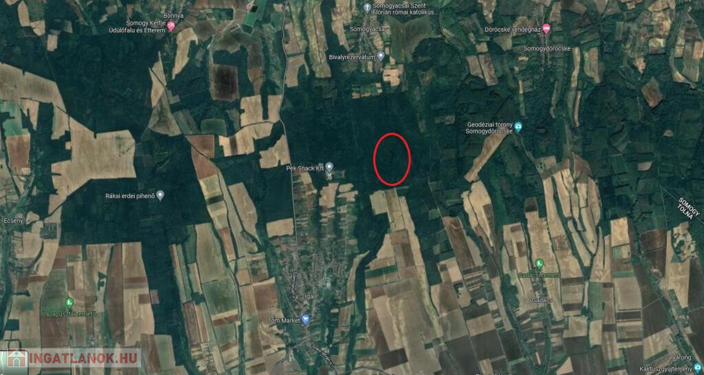 Igalban kínálunk megvételre egy földterületet. Külterületen helyezkedik el, „erdő” besorolású. A terület teljes nagysága 357.609 m2, ennek 230/36118-ad része, azaz 2.277,26 m2 eladó. AK értéke 180,52.