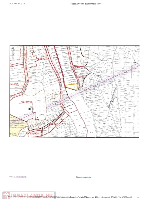 A telek Lke-o/4 övezeti besorolásba tartozik mely szerint: