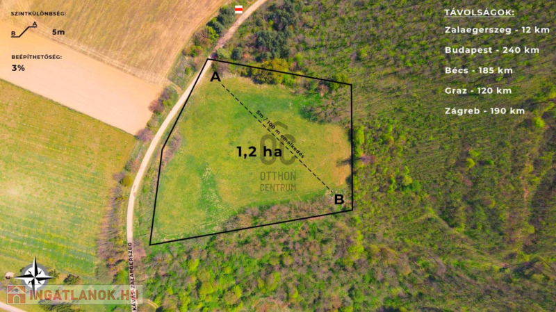 Zalaegerszegtől 12 km-re, nyugatra, Kávás területén eladó egy 1,2 hektár méretű építési telek.
