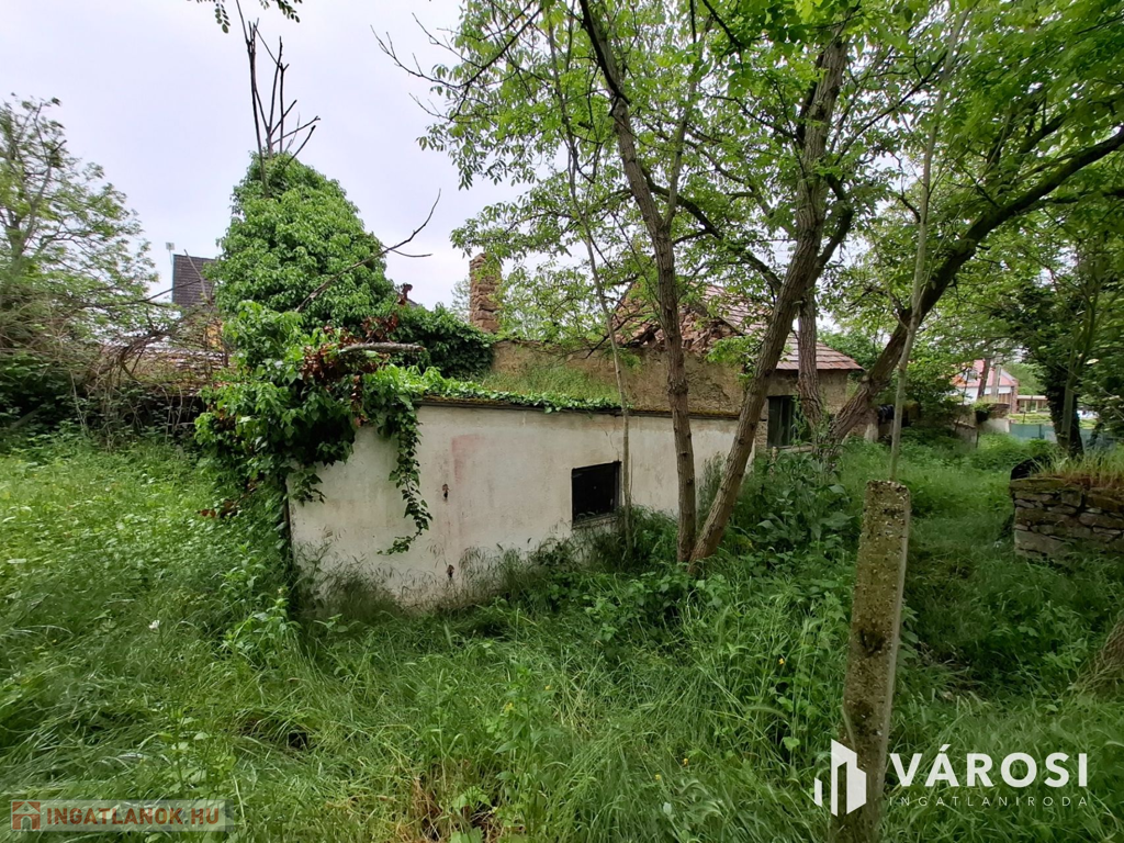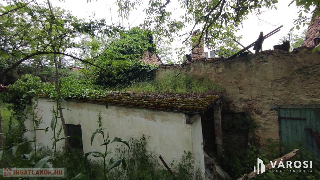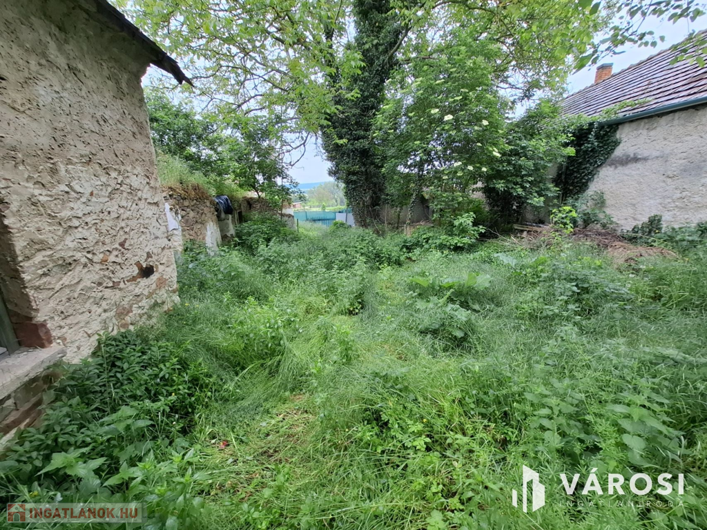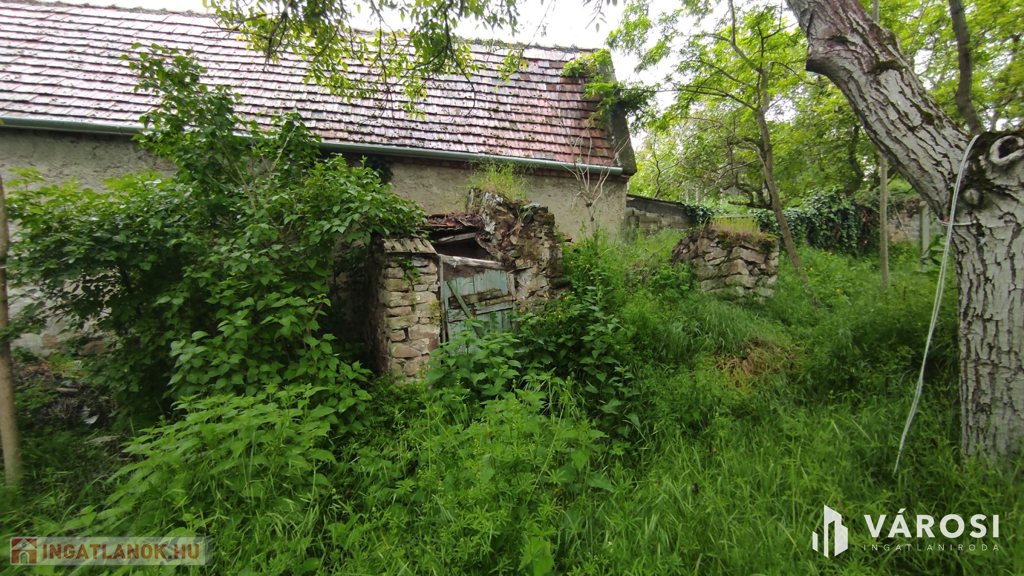 A valamikor szebb napokat megélt épület, az előtte álló ugyancsak romos épület udvarán keresztül szolgalmi joggal megközelíthető. A domboldalon elnyúló telek területe 504 m2, - kilátással a kővágóörsi hegyekre, - oldalhatáron beépített. Az alaprajzon feltüntetett épület falai állnak, helyiségei jól kivehetők. Két szoba, konyha, nappali, fürdőszoba volt a régi házban.