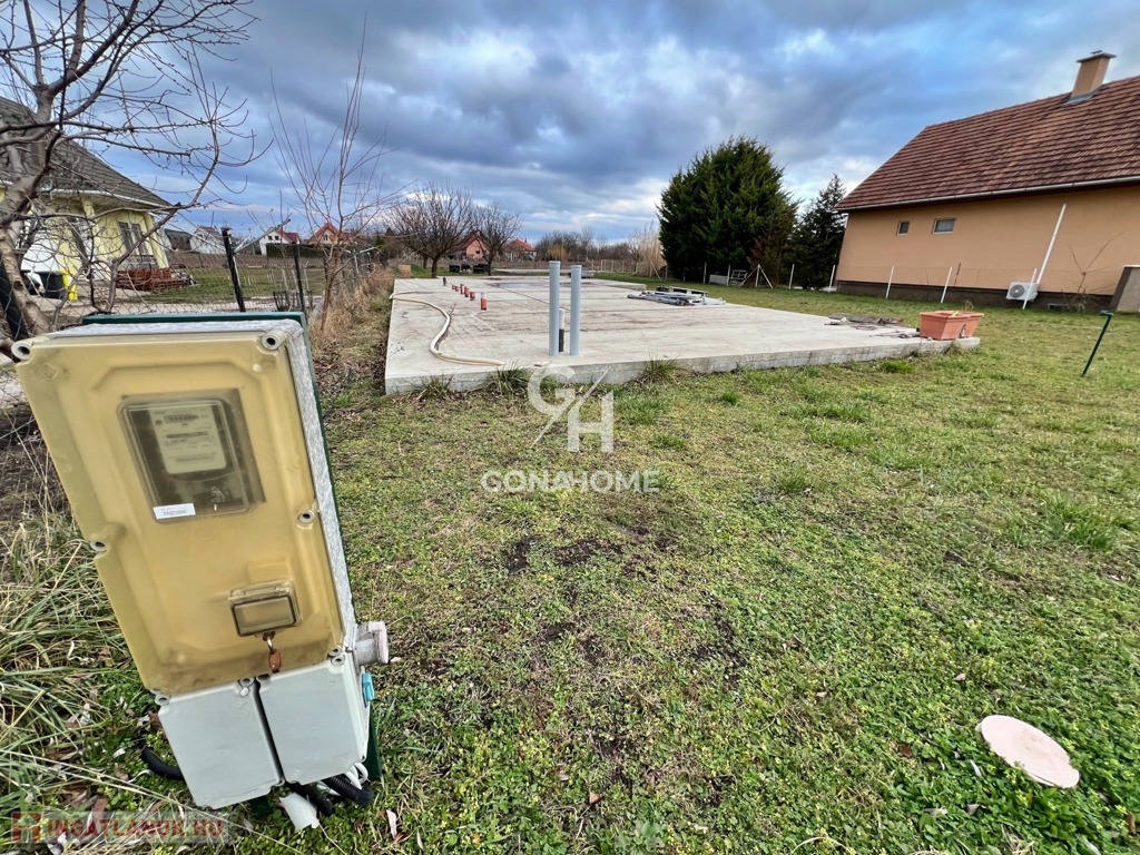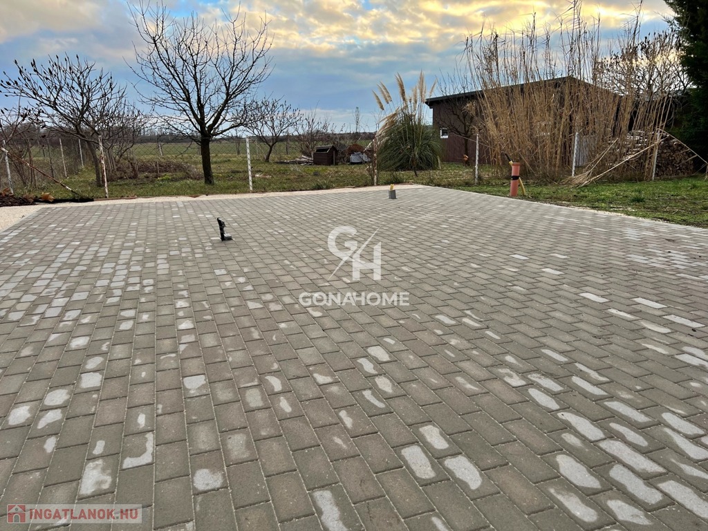 - A telek hátsó részén kialakított térkövezett terület 62 m2, a térkövezés alatt pedig bekötésre kerültek a közművek, illetve kialakításra került az oszlop fogadó alapozás is