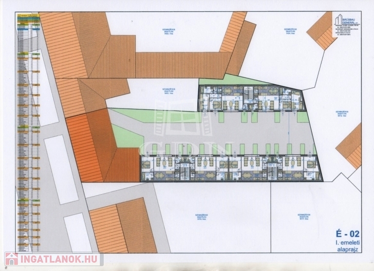 Az ingatlan 18 lakás megépítési lehetőségével és egy utcafronti felújításra szoruló polgári házzal eladó. Az utcafronti, városképileg védett polgári ház mögötti telken maximálisan 18 db új lakás és 20 db garázs valósítható meg.