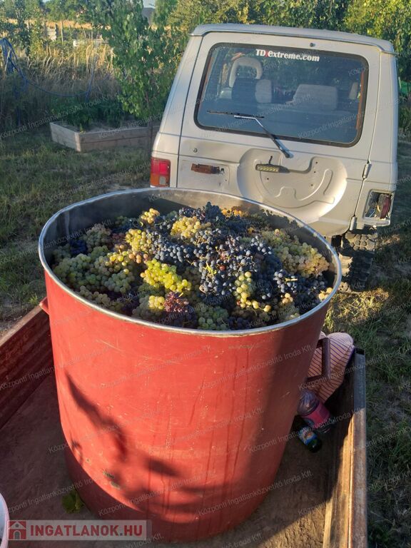 A kertben termő legalább 20 db termő gyümölcsfa van, és 4 sor vegyes borszőlő