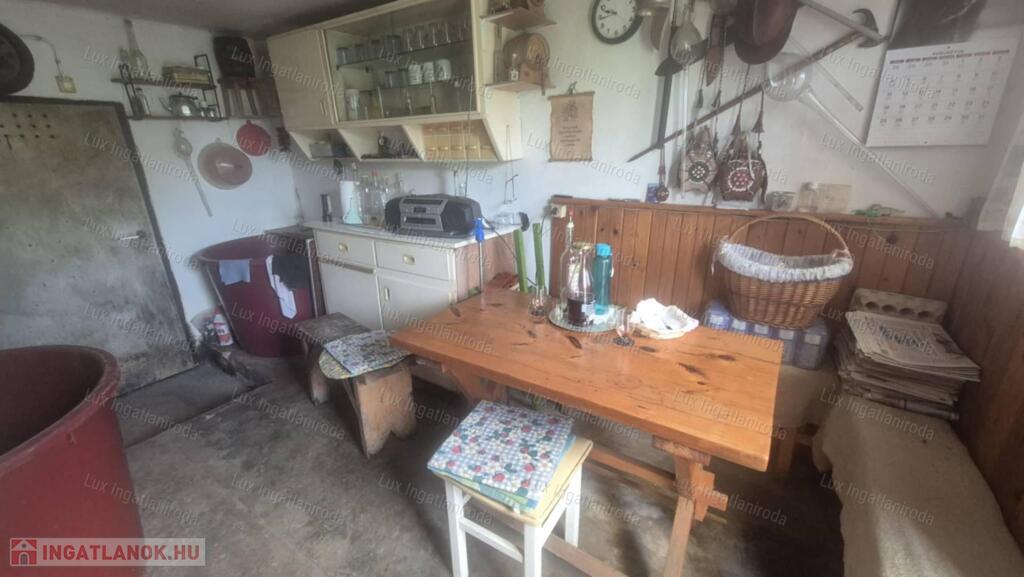 Az ingatlanon egy 25 m²-es téglaépítésű, minden igényt kielégítő kis ház található, amely egy konyhából, szobából és fürdőszobából áll. A fűtést fatüzelésű kályha biztosítja, a melegvizet villanybojler szolgáltatja, így az épület akár azonnal használatba vehető.