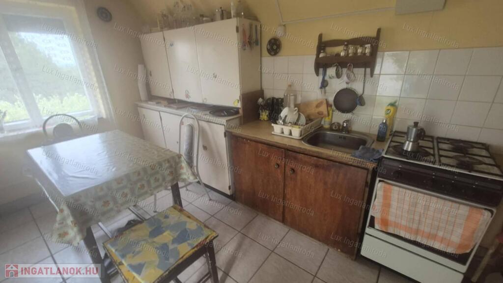 Az ingatlanon egy 25 m²-es téglaépítésű, minden igényt kielégítő kis ház található, amely egy konyhából, szobából és fürdőszobából áll. A fűtést fatüzelésű kályha biztosítja, a melegvizet villanybojler szolgáltatja, így az épület akár azonnal használatba vehető.