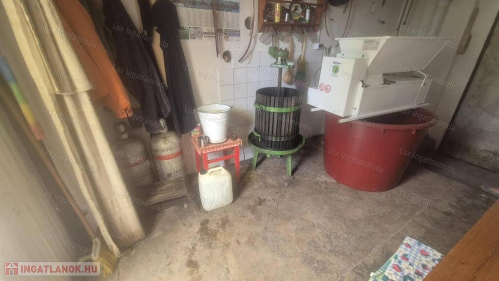 A ház körül gondozott szőlősorok és sokféle gyümölcsfa található, a fúrt kút biztosítja az öntözést. A birtokon pince és présház is helyet kapott, így a szőlőfeldolgozás és tárolás is helyben megoldott. A ház mellett több tároló és feldolgozó helyiség is rendelkezésre áll, amelyek tökéletesek szerszámok, gépek vagy termények elhelyezésére.