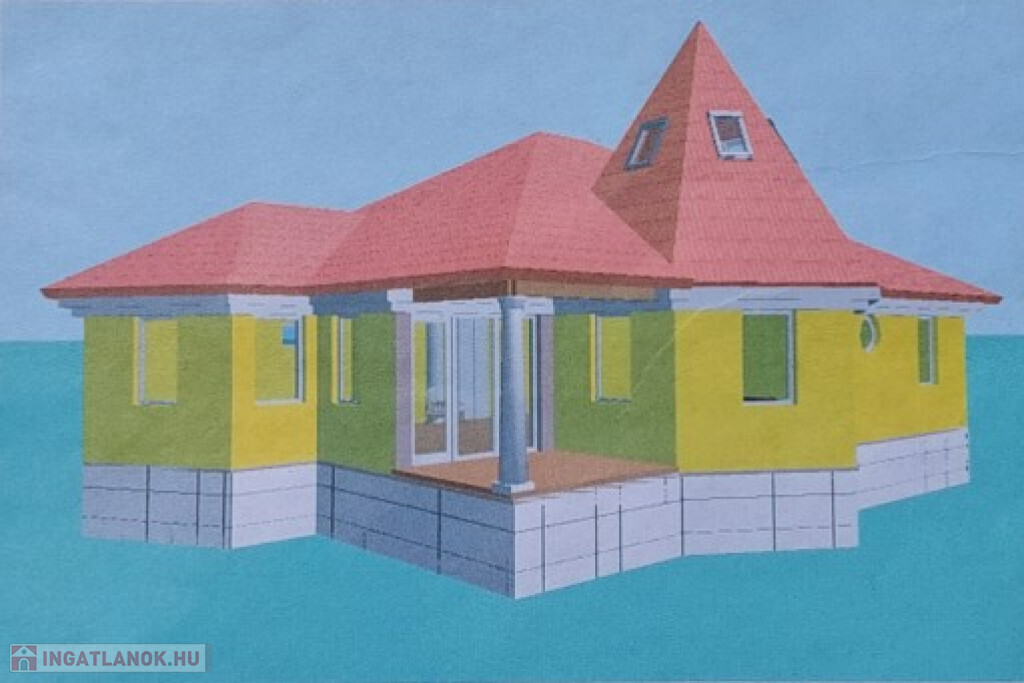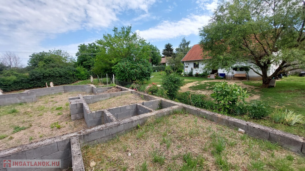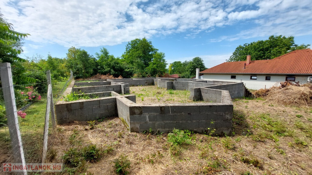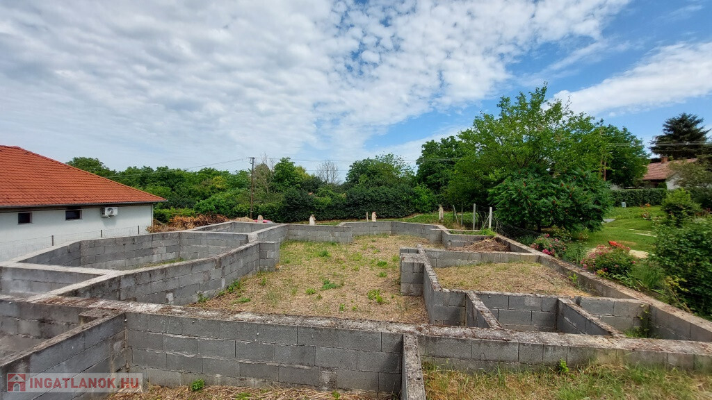 Mernyén, Kaposvártól 20 km-re a Balaton felé kínálunk megvételre egy összközműves belterületi építési telket, ahol a leendő ház alapjai már megvannak. A telek 1198 m2-es, van egy enyhe oldallejtése, amit a tervezők természetesen figyelembe vettek. A megálmodott ház lakóterülete 148 m2, plusz a 37 m2-es intim terasz hátul, bruttó 185 m2. A tervek szerint az otthon középpontja a nappali-étkező-konyha együttese, lenne három normál méretű szoba, valamint egy különlegesebb alakú „billiárd terem”, fölötte kis toronnyal. Ezen kívül a tervrajzon szerepel még fürdő, WC, kamra, gardrób. De jelenleg ez csak terv és az alapozás, ezen bármit lehet módosítani saját ízlés, elképzelés szerint. Ami biztos, hogy a telek nagyon jó helyen fekszik, közel a település központjához, de egy csendes, nyugodt helyen. Az új 67-es gyorsforgalmi út segítségével Kaposvár 15 perc alatt elérhető, a Balaton 30 perc alatt, és Budapest is másfél órán belül.