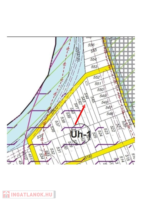 Üdülőövezet (ÜH-1): 10% beépíthetőség, max. 6 m épületmagasság, 60% zöldterület