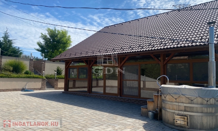 A telken elhelyeztek egy 3000 l nagyságú dézsafürdőt, melyből a csodálatos panorámában gyönyörködhetünk.