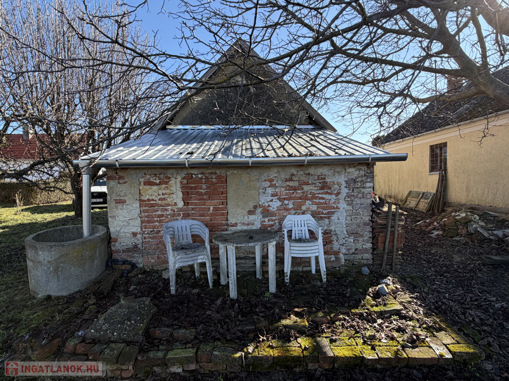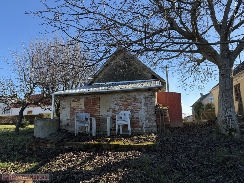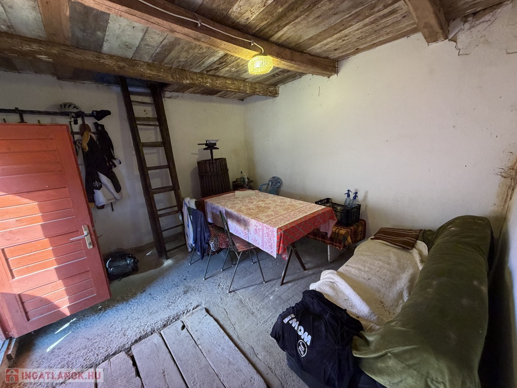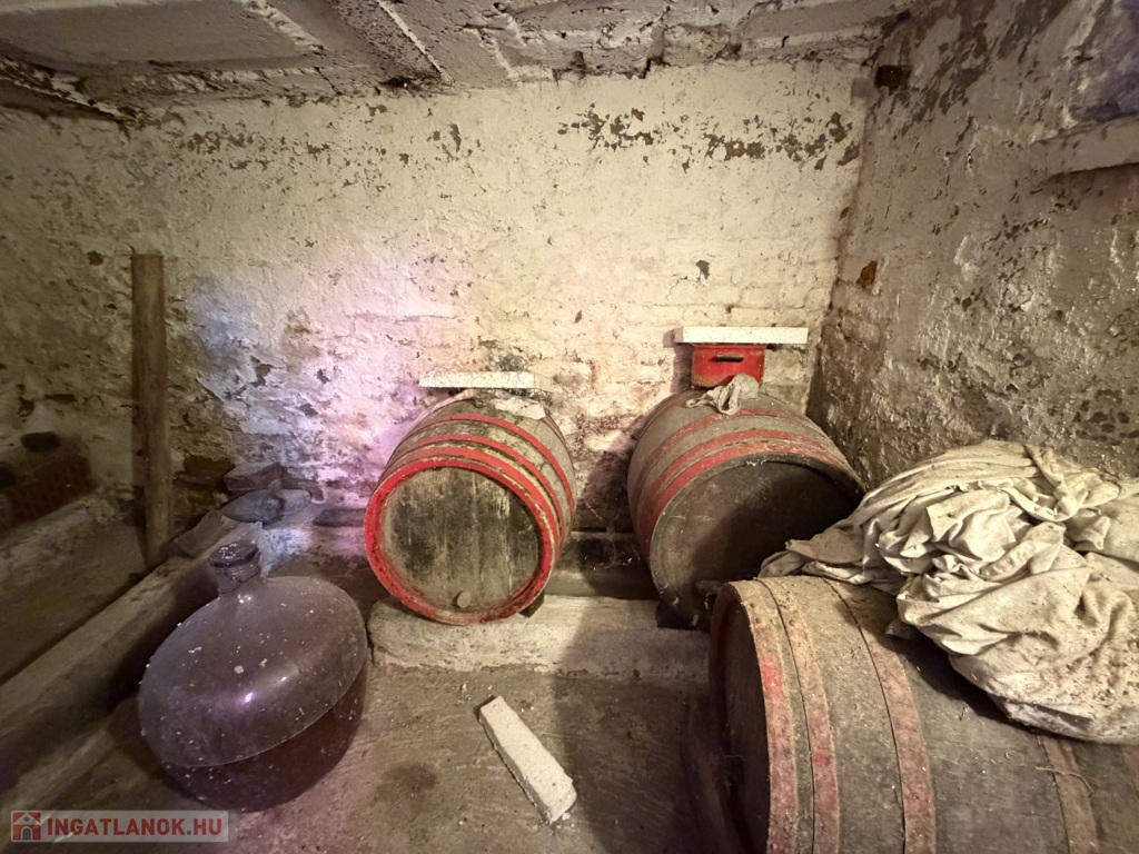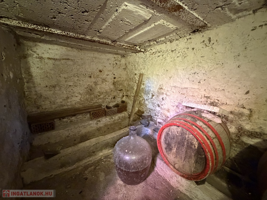 A telken egy cseréptetős, tégla falazatú épület található, amely két helyiségből áll, összesen 21 m² alapterülettel. Az épület alatt 6 m²-es pince is kialakításra került, amely ideális bor vagy élelmiszer tárolására. A gazdálkodást és a mindennapi használatot egy 13 m²-es külön tároló is segíti, amely fa és szerszámok tárolására alkalmas – ennek tetőszerkezete felújított.