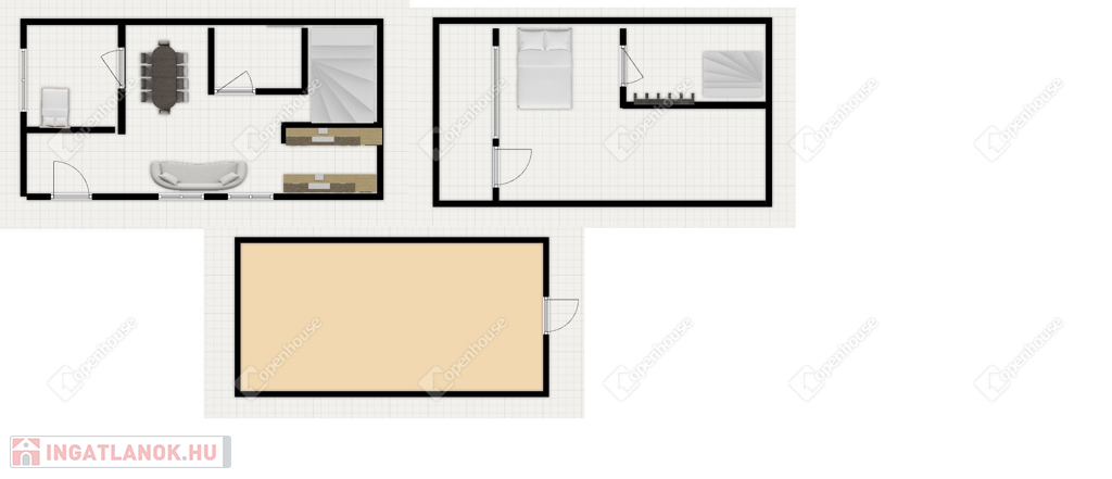 Magas földszinten található egy előtér ebből nyílik egy tágas napfényes Amerikai konyha étkezővel, szintén innen nyílik egy hálószoba és egy praktikusan elrendezett fürdőszoba – wcvel egyben. A felső szint lépcsőn közelíthető meg innen nyílik egy hálószoba-gardróbbal és egy nagyméretű terasz melyről a dunai panorámát élvezhetjük.
