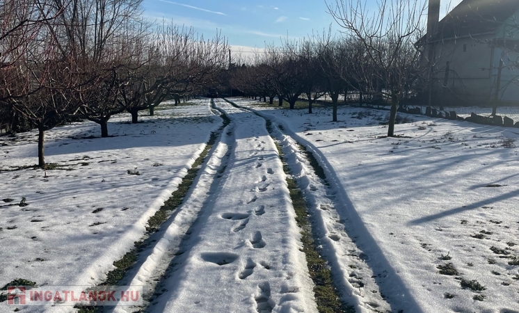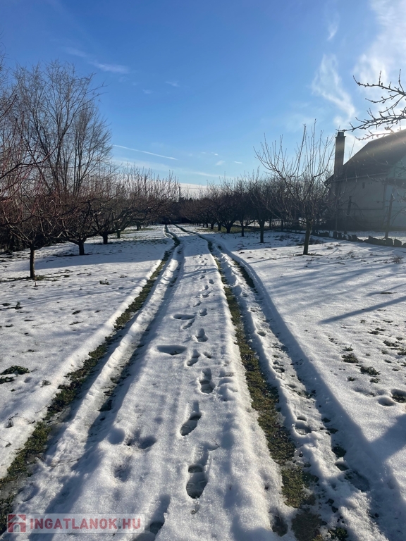 A telek két utcáról is megközelíthető, utcafrontja 14,4 méter, elhelyezkedése jól megközelíthető, mégis nyugodt környezetet biztosít. A terület kb. 100 termő gyümölcsfával van betelepítve.