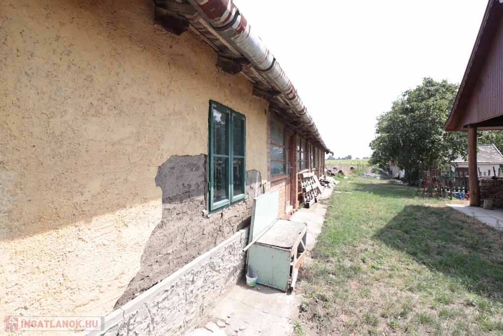 Orosházán központjától 6,5 km-re található Monori Ugarok tanyaközpontban kínálunk eladásra egy az ingatlannyilvántartás szerint \"kivett tanya és szántó\" -ként bejegyzett ingatlant. A tanyán jelenleg egy jó állagú főépület mellett, egy bontandó vertfalú ház és egy felújításra szoruló istálló, valamint egyéb melléképületek tartoznak, amelyek a térképszelvényen fel vannak tüntetve. A vízellátást fúrt kút és hidrofor szolgáltatja, az elektromos hálózat teljes felújításon esett át. A főépületben konyha, fürdő és WC, valamint a galérián hálófülke található. Fűtése fatüzelés.
