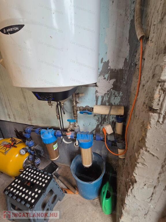 - Vízellátás: A ház vízellátását fúrt kút biztosítja, amely bevizsgált, iható minőségű vizet ad, és két szűrőn keresztül érkezik a házba, így a víz mindig tiszta és egészséges.