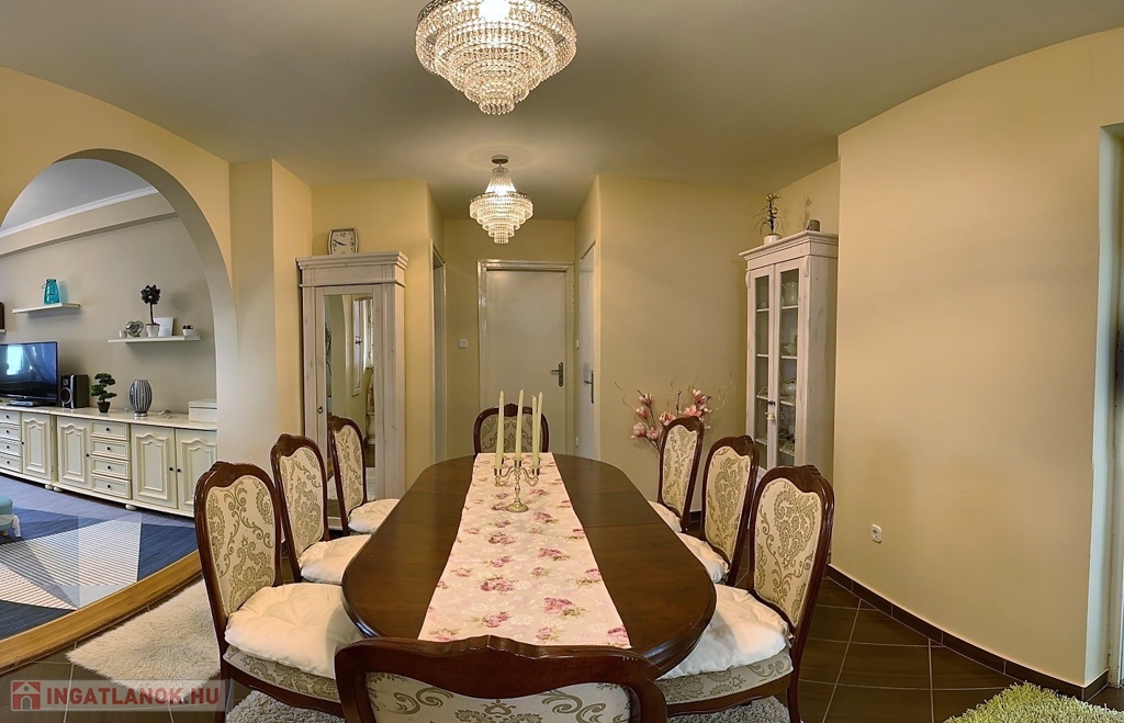 A harmadik egy 447 m2-es telken, 2019-ben felújított, szigetelt, két lakóegységből álló (amik összenyithatók), egy nappali+2 szobás és egy nappali+1 szobás, 188m2-es, szuterén résszel, garázzsal rendelkező családi ház.