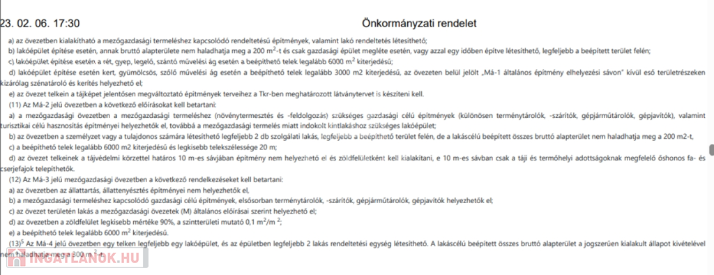 Ezek a területek csak 50.000 nm-től lennének beépíthetőek.1325 nm belőle 6-os, 710 nm pedig 7-es minőségi osztályú.