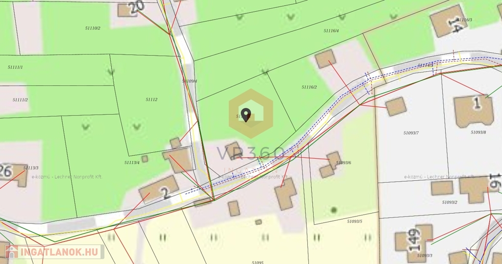 A telken található egy két szintes kis ház kb. 2×16 m² alapterülettel, pincével, ciszternával.