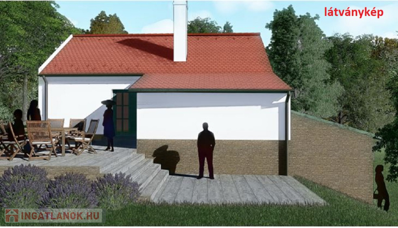 1. A meglévő gazdasági épület átalakítására építészeti tervek készültek, és a településképi engedélyezési határozatot is megkapták. (ennek látványképei és alaprajzai a hirdetésben láthatóak) A tervezett épület háromszintes, három szobás, összkomfortos, teraszos. (Az elképzelés alapján az északkeleti oldalon meglévő épületrész elbontásra kerül. A pince keleti bejárata a déli oldalra kerül át, a belső lépcsők megszüntetésre kerülnek, az egész alsó szint a borospince padlószintjére lesz süllyesztve. A padlástér - lakószoba - egy újonnan kialakított belső lépcsővel érhető el a földszintről.)