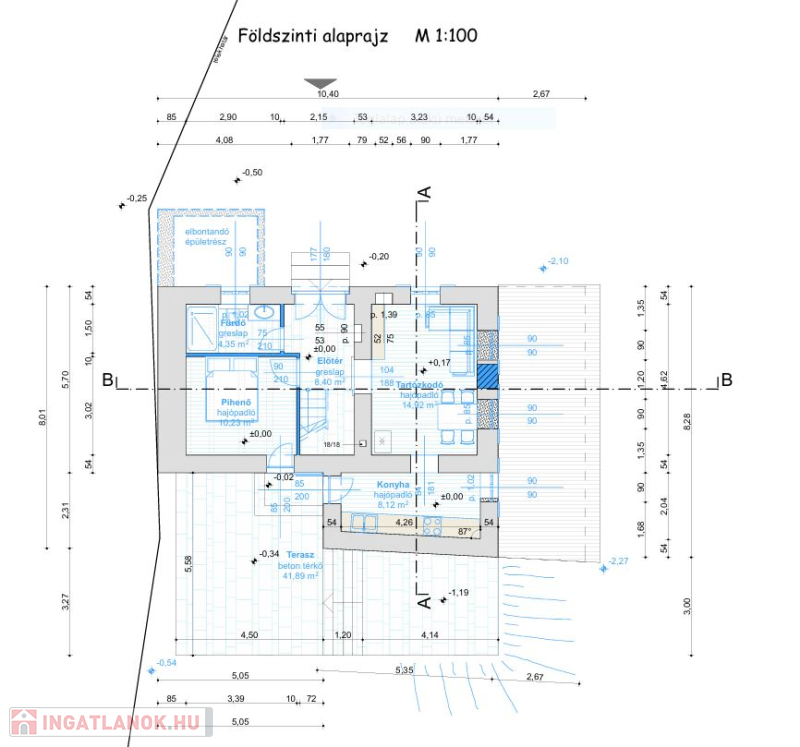 - lejtő felőli homlokzatmagasság 6,5 m