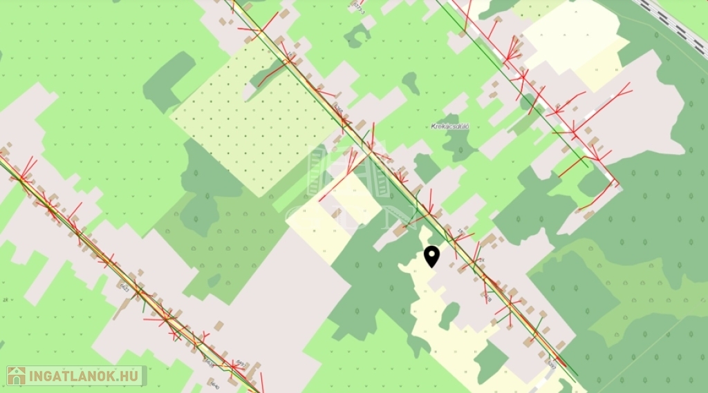 A telken FÚRT kút, villanyoszlopok, és kiépített gázcső, és gázóra szekrény található.