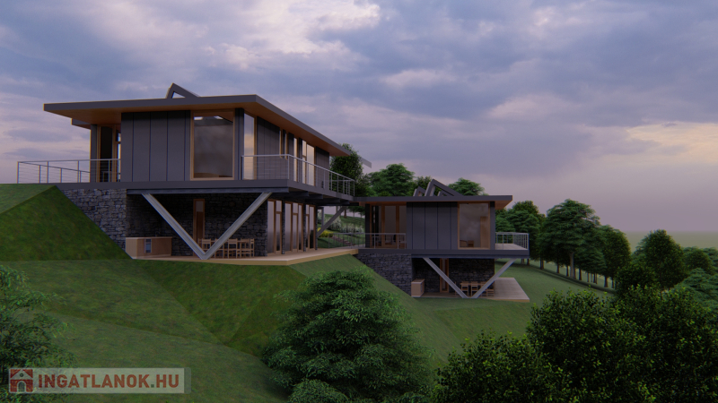 Az elképzelt két ingatlan privát szférája teljesen elkülönül egymástól, illetve az utca szintjétől és egyedi tervezői ötletességgel alkalmazkodnak a terepviszonyokhoz.