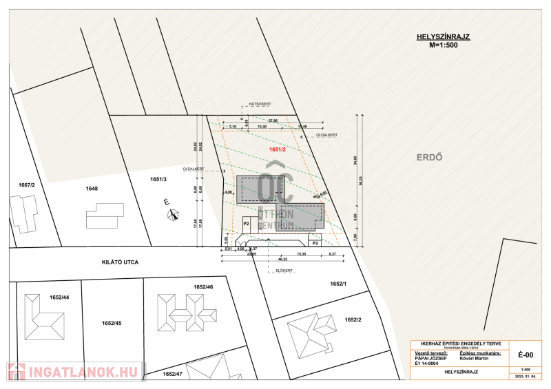 Építési telek paraméterei: