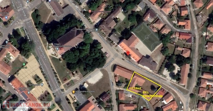 Polgár belvárosában a Brankovics téren eladó 1114m2-es Lke-2 övezeti besorolású építési telek.