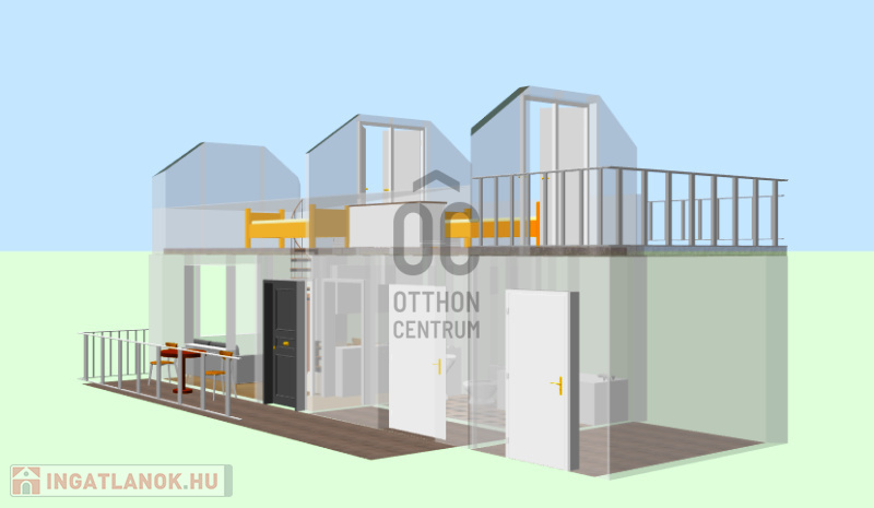 - földszint 23m2+terasz, emelet 6,5m2, közel 10m2-es erkéllyel
