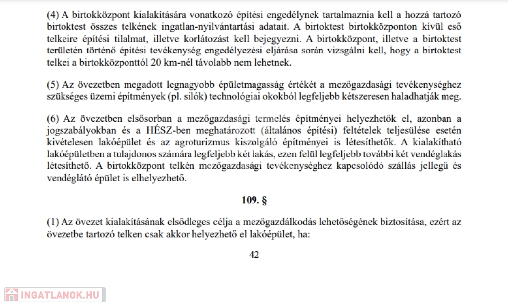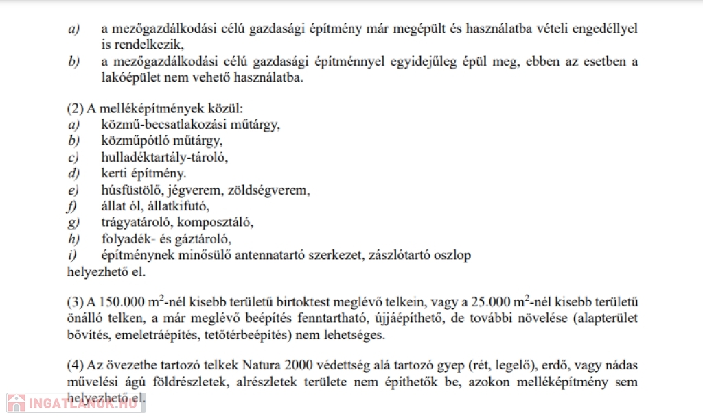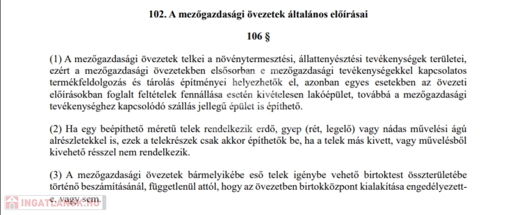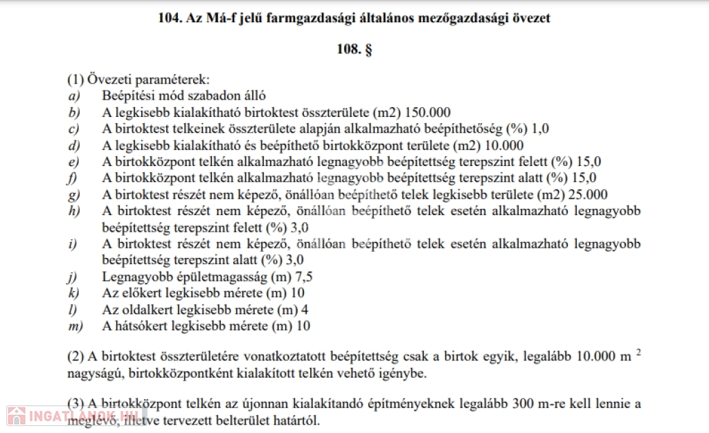 A telek Má-f besorolású, farmergazdasági általános mezőgazdasági terület. Csak 10.000 m2 felett beépíthető 1%-ban.