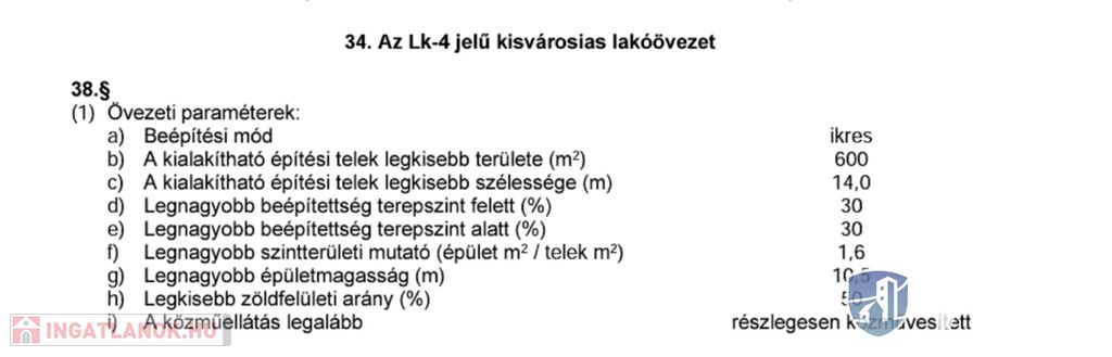 A telek Lke-4-es, azaz kisvárosias besorolással rendelkezik: