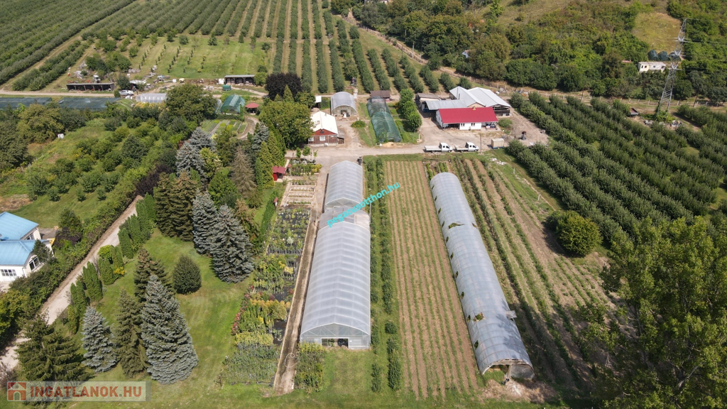 A gyümölcs és díszfa iskola 8 ha nagyságú amely 2 ha