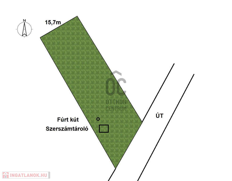 - DK utcafrontú telek 15,7m széles.