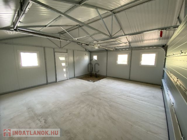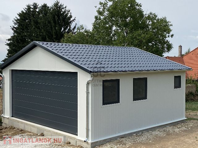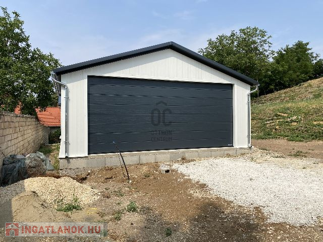A telken található egy új építésű, hőszigetelt, szendvicspanel dupla garázs épület. Hörmann hőszigetelt motoros garázskapu, 4 db műanyag szigetelt bukó-nyíló ablak fix szúnyoghálóval és egy több ponton záródó szigetelt bejárati ajtó került beépítésre. Egy vizes blokk kiépítése is előkészítésre került, melyhez egy 10 m³-es emésztő lett megépítve. Az épület alapterülete 36.5 m². Építkezés idejére akár kiváló lakhatást biztosít, későbbiekben pedig 2 gépkocsi tárolására alkalmas. Található még a területen egy szintén új építésű kerti szerszámtároló is, melynek mérete 2.5 x 3 m.