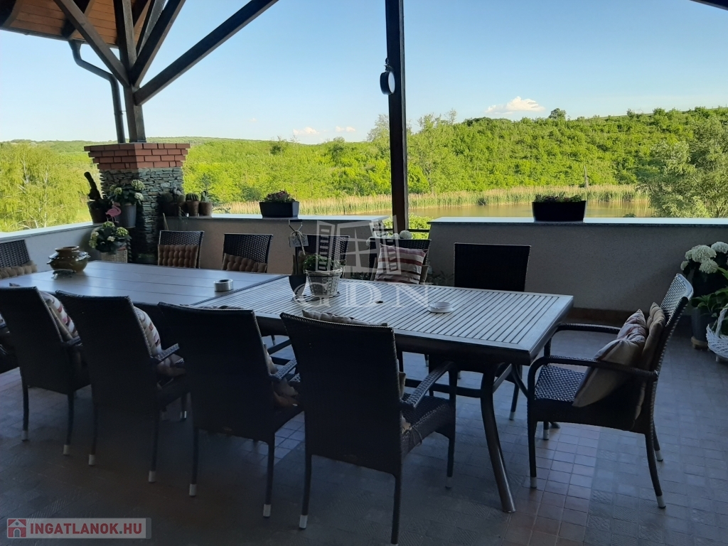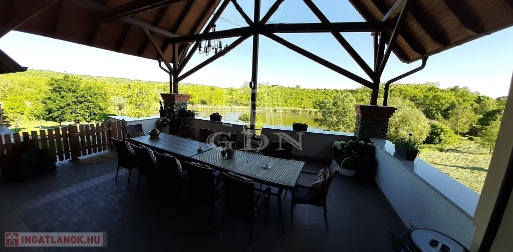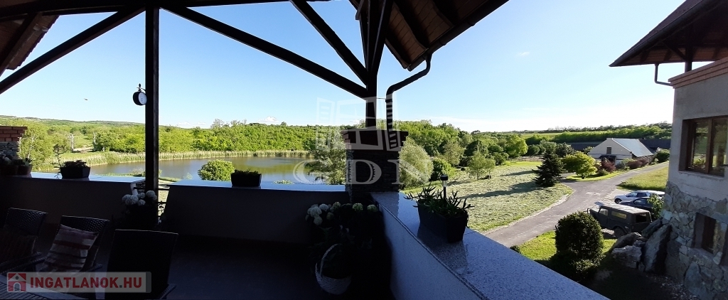 A belső térre is néz egy terasz. Az épület nappalijából nyíló hatalmas erkélyről a természet színes világában és a halastó csillogó vízfelületében gyönyörködhetünk.