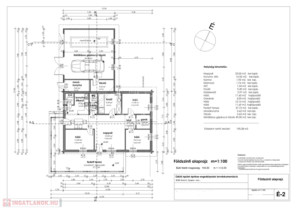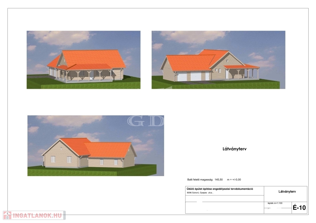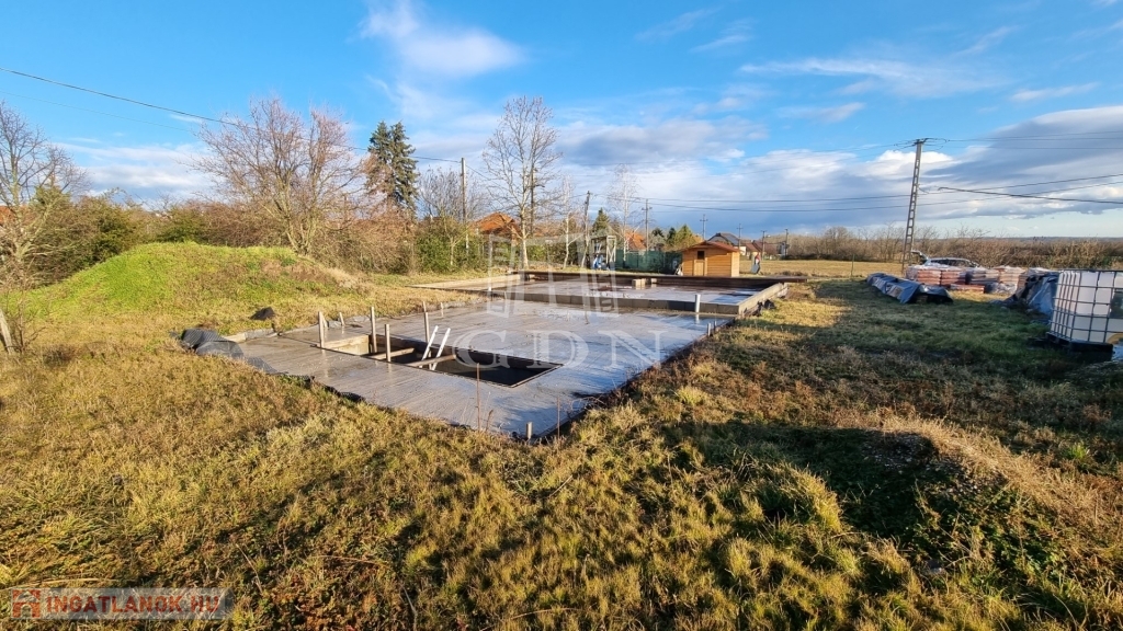 Vt-003754. Sukorón a Gyepes utcában, 1067 m2-es építési telek, 130m2-es nappali+3 szobás ház + 49 m2-es szerelőaknás garázs építési tervekkel, elkészült alapozással eladó!