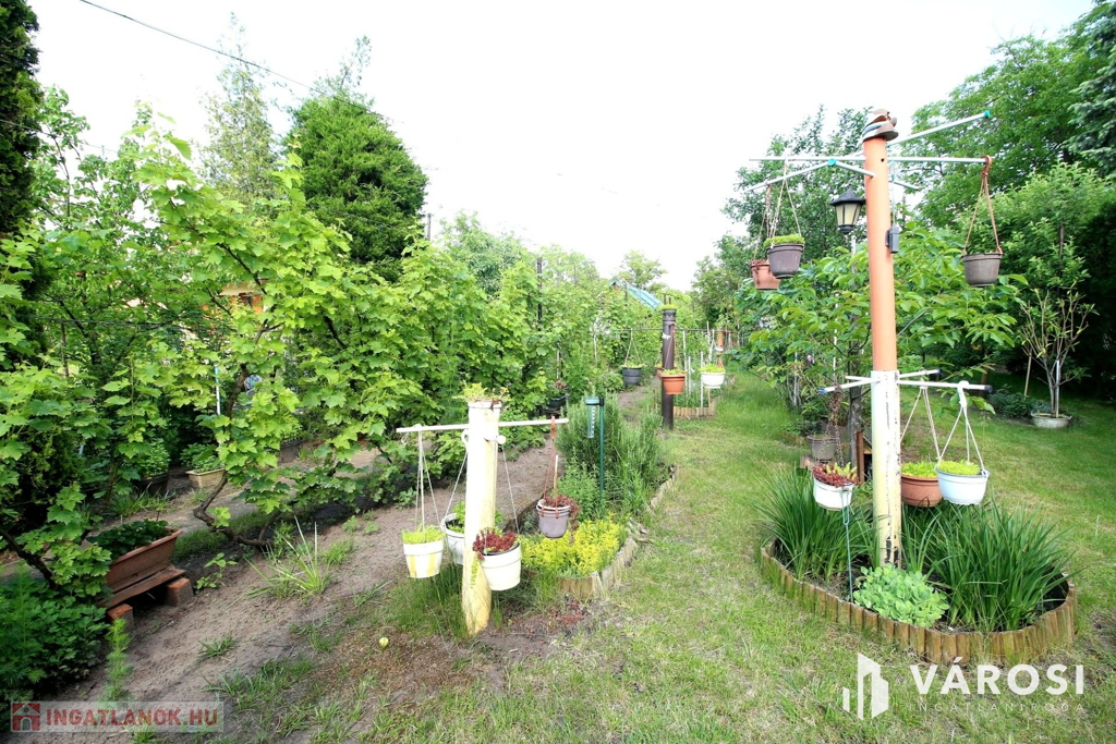 Eladó Szeged népszerű üdülő övezetében, Sziksóstón, egy 833 m2 területű művelés alól kivett zártkerti ingatlan, rajta nyári pihenésre alkalmas faházzal. Az ingatlan, tulajdonosok számára felbecsülhetetlen értékét a gyönyörűen gondozott kert adja, melyben a kordonon, sövénynek nevelt, bőtermő, nemes almafák mellett számtalan más gyümölcsfa, bokor, konyha-és virágoskert is megtalálható. Egy igazi madár csicsergős méhlegelő!