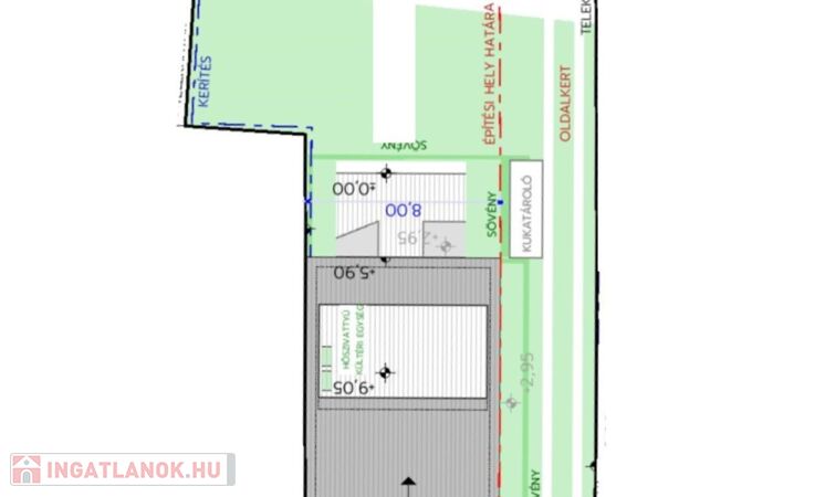 - beépítési mód: oldalhatáron álló