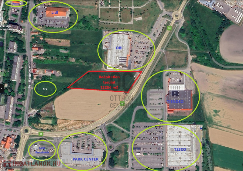 Az ingatlant fekvése és beépíthetősége kiválóan alkalmassá teszi nagy méretű kereskedelmi vagy szolgáltató épület (áruház, bevásárlóközpont) építésére.