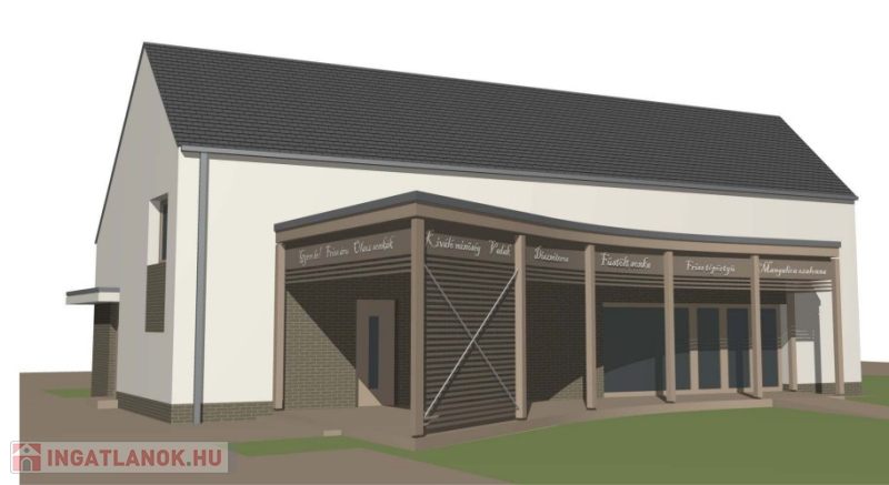 A telekre érvényes építési engedély van, amely egy kétszintes kereskedelmi és vendéglátó funkciót tartalmazó épület megépítését tartalmazza!