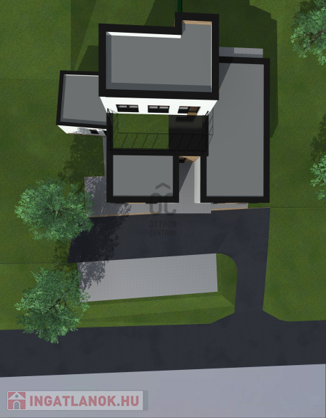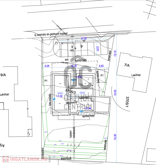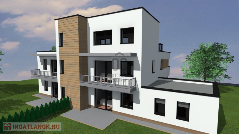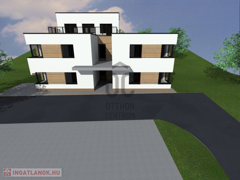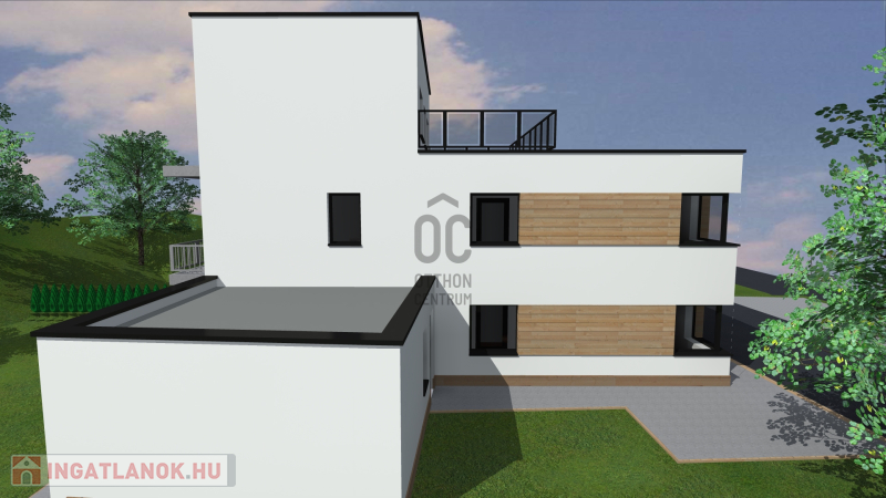 A tervek alapján egy 4 lakásos társasház + 1 iroda építhető rá.