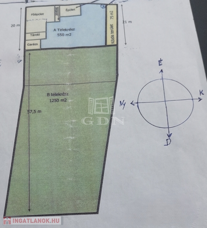 A telek téglalap alaku, nyelestelek, osztatlan közös tulajdon.
