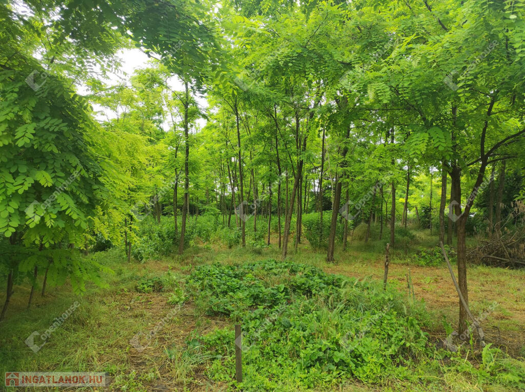 Az eladó terület jelenleg egy családi ház folytatásában lévő, 150-200 db. akácfával beültetett telek.