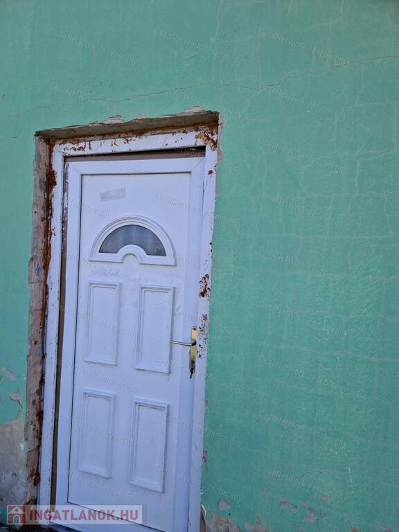 - a kis házon új tető, műanyag ablakok és bejárató ajtó látható,