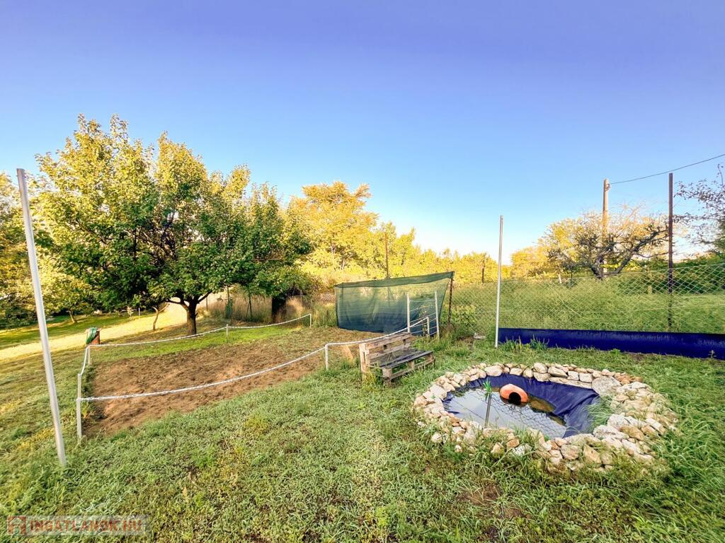 • ÉPÍTÉSI LEHETŐSÉG: a telken jelenleg egy 12 m²-es bontandó épület található. Ennek helyére elkészült a tervdokumentáció egy 35 m²-es (99,75 m³) gazdasági épülethez, amelyhez a szükséges 25 cm vastag Itong falazóelemek már rendelkezésre állnak. A tervek és az építőanyag a vételár részét képezik.