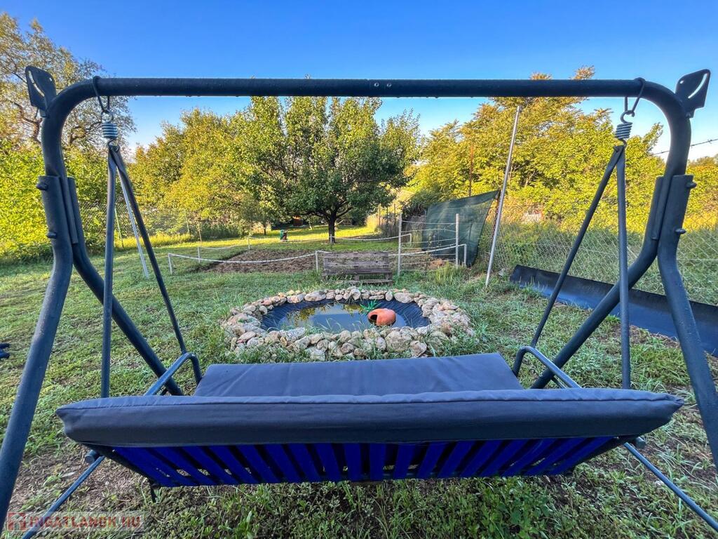 • Hangulatos kerti tó pihenőrésszel, hintaággyal, napvitorlával