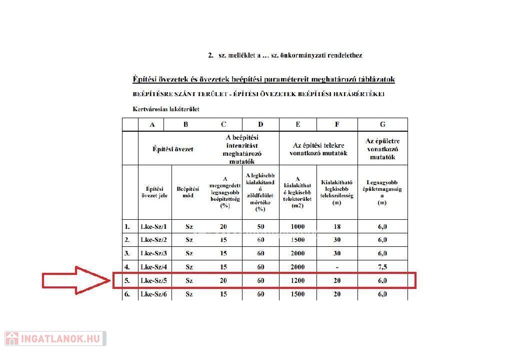 Beépíthetőség: az illetékes HÉSZ. adatokat tartalmazó táblázatot a képek között találja.