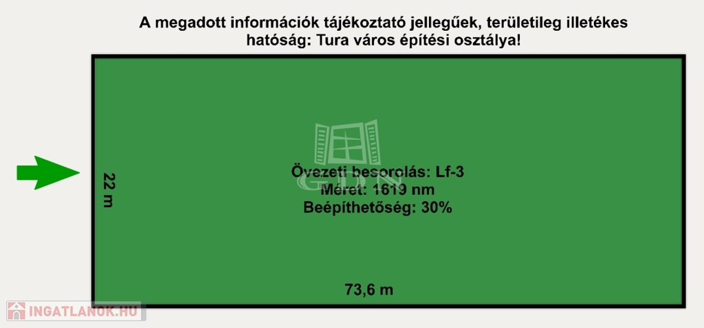 A jelenleg rendelkezésre álló információk szerint 30%-ban beépíthető, LF-3-as övezeti besorolással rendelkezik, valamint aszfaltos úton közelíthető meg.